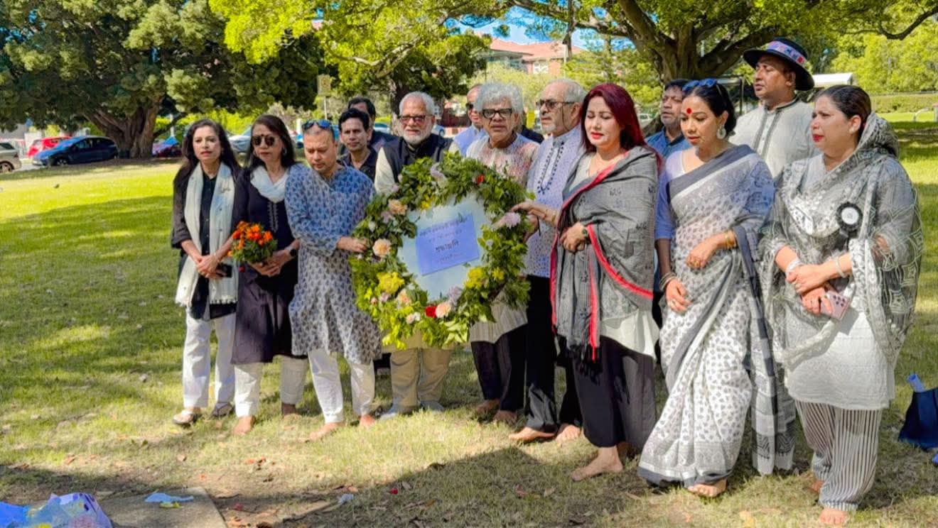 পরে অস্ট্রেলিয়া বাংলাদেশ প্রেস ও মিডিয়া ক্লাবের পক্ষ থেকে পুষ্পস্তবক অর্পণ করেন কাজী সুলতানা সিমি, আমাদের কথা নিউজপোর্টালের সম্পাদক পূরবী পারমিতা বোস ও মোস্তাফিজুর রহমান।