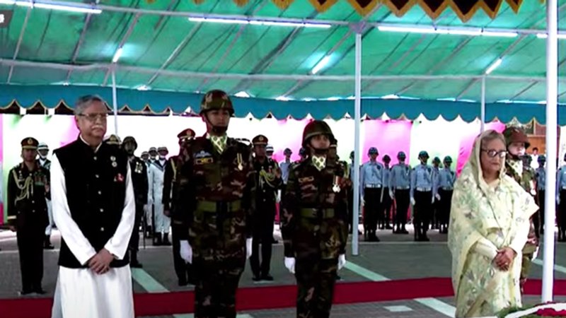 বঙ্গবন্ধুর সমাধিতে শ্রদ্ধা নিবেদন শেষে কবর জিয়ারত করেন রাষ্ট্রপতি ও প্রধানমন্ত্রী।