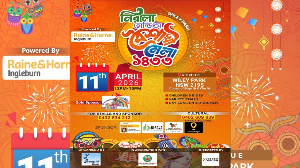 অস্ট্রেলিয়ার সিডনিতে আগামী ১১ এপ্রিল বাংলা নববর্ষ ১৪৩৩ উদযাপন হতে যাচ্ছে। সিডনির বাঙালি অধ্যুষিত ওয়ালি পার্কে অনুষ্ঠিত হবে জাঁকজমকপূর্ণে এ বৈশাখী মেলা । প্রবাসের মাটিতে বাঙালির গান, নৃত্য, সংস্কৃতি, ঐতিহ্যবাহী খাবার আর প্রাণের মিলনমেলায় মুখর হয়ে উঠবে পুরো এলাকা। গানচিল মিউজিকের আয়োজনে অনুষ্ঠিত এই বৈশাখী মেলার টাইটেল স্পন্সর নিরালা হোল্ডিংস এবং প্রধান স্পন্সর Raine & Horne Ingleburn। এছাড়াও সহযোগী হিসেবে রয়েছে Bangladesh Travels। ১১ এপ্রিল, শনিবার দুপুর ১২টা থেকে রাত ১০টা পর্যন্ত চলবে এই দিনব্যাপী আয়োজন। মেলায় থাকবে শাড়ি, চুড়ি, কসমেটিকসসহ নানা ধরনের পণ্যের স্টল, শিশুদের জন্য বিভিন্ন রাইড এবং দিনভর গান, নৃত্য ও নানা বিনোদনমূলক পরিবেশনা। Women Council Australia...