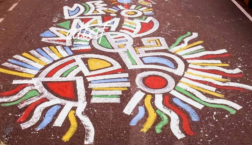 সোমবার (১৩ এপ্রিল) সকালেই পথচারীদের দৃষ্টি কাড়ে রঙিন এই সড়ক। সাদা-লাল-হলুদ-নীলসহ নানা রঙে আঁকা আল্পনায় ফুটে উঠেছে বাংলার গ্রামীণ জীবন, লোকজ সংস্কৃতি, পহেলা বৈশাখের উৎসবমুখরতা ও সম্প্রীতির বার্তা। লতাপাতা, ফুল, পাখি, সূর্য, নকশিকাঁথার মোটিফসহ নানা চিত্রে সড়কটি যেন পরিণত হয়েছে এক বিশাল ক্যানভাসে।