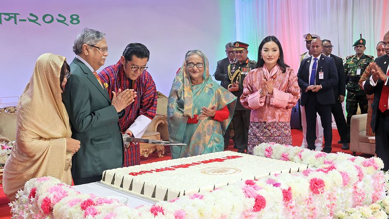 স্বাধীনতা দিবস উপলক্ষে বঙ্গভবনে রাষ্ট্রপতি মো. সাহাবুদ্দিন আয়োজিত সংবর্ধনায় যোগ দিয়েছেন প্রধানমন্ত্রী শেখ হাসিনা ও ভুটানের রাজা জিগমে খেসার নামগুয়েল ওয়াংচুক।