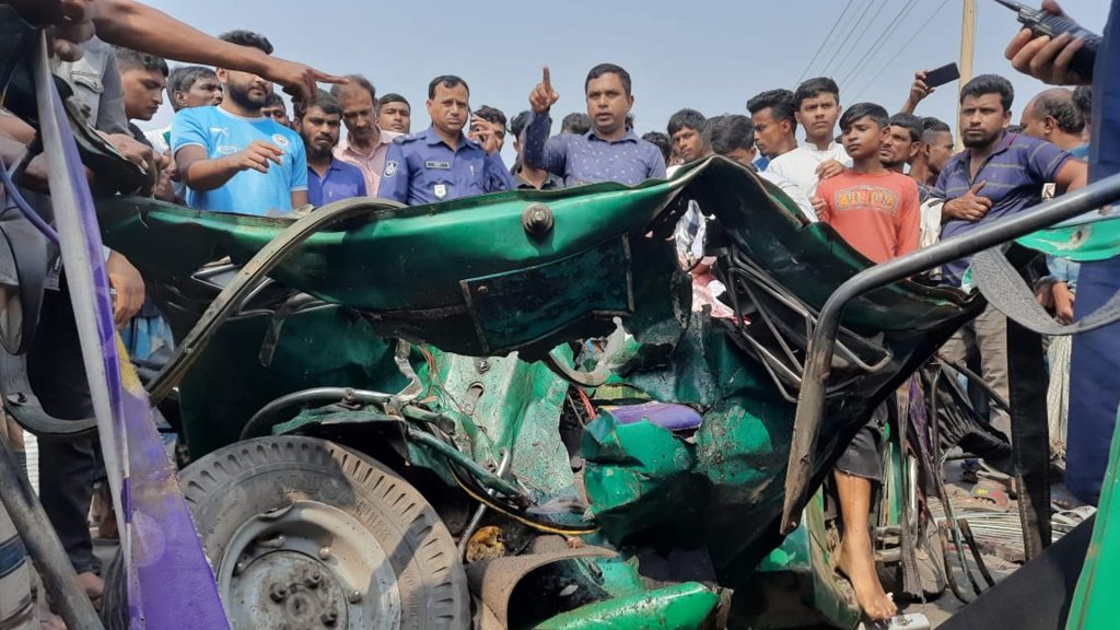 ময়মনসিংহে বাসচাপায় দুমড়ে-মুচড়ে যাওয়া অটোরিকশার ৭ যাত্রী নিহত হয়েছে । আজ শুক্রবার (১৬ ফেব্রুয়ারি) বেলা ১১টার দিকে ময়মনসিংহ-শেরপুর সড়কে সদরের চর ঈশ্বরদীয়া ইউনিয়নের চরবড়বিলা এলাকায় এ দুর্ঘটনা ঘটে। তাৎক্ষণিকভাবে নিহতদের নাম-পরিচয় জানা যায়নি। ঘটনাস্থলে উপস্থিত সদর থানার উপপরিদর্শক (এসআই) হারুনুর রশিদ জানান, দুর্ঘটনায় ৭ জন নিহত হয়েছেন। মরদেহ উদ্ধারের কাজ চলছে।