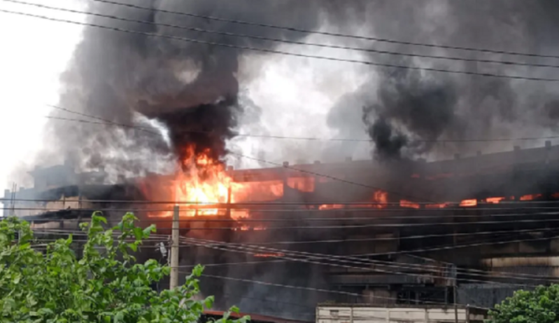 রোববার (২৫ আগস্ট) রাত সাড়ে ১০টার দিকে লাগা আগুনে এখনও দাউ দাউ করে পুড়ছে কারখানাটি।