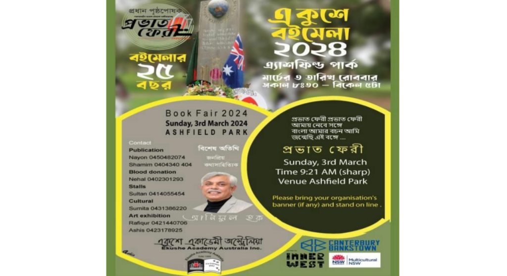 প্রতি বছর মত এইবারও অস্ট্রেলিয়ার সিডনির অ্যাশফিল্ড পার্কে দিনব্যাপী একুশে বইমেলা আয়োজনের প্রস্তুতি চলছে বেশ জোড়েসরে।কারন এইবার একুশে একাডেমী পালন করতে যাচ্ছে বইমেলার ২৫ বছর পূর্তি।প্রাণের এই বইমেলার জন্য সারা বছর অপেক্ষা করে থাকে এখানকার লেখক-পাঠকসহ সর্ব শ্রেনীর দর্শকরাও।মূলত আন্তর্জাতিক মাতৃভাষা দিবসকে সামনে রেখে গত ২৫ বছর ধরে এ মেলার আয়োজন করে চলছে মহতী সংগঠন একুশে একাডেমী।