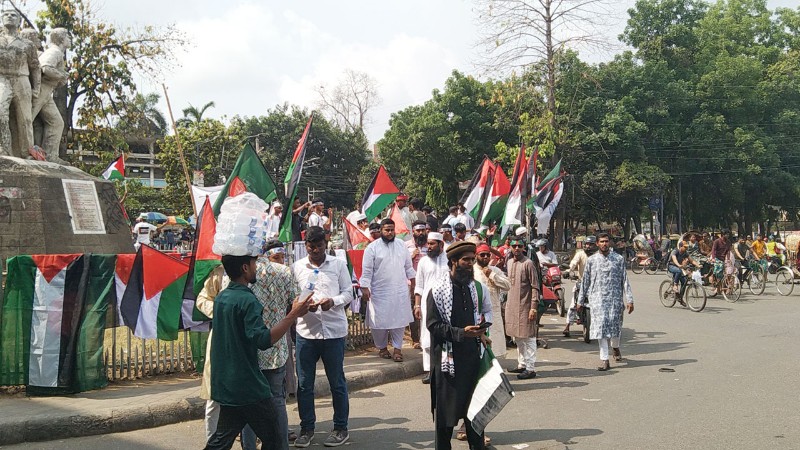 প্রত্যেকের হাতে রয়েছে দেশের পতাকা ও ফিলিস্তিনের পতাকা। সবার লক্ষ্য সোহরাওয়ার্দী উদ্যান, সেখানেই গাজার নিরস্ত্র জনগণের প্রতি সংহতি প্রকাশ, বিশ্বজনমত গঠন এবং মানবিক মূল্যবোধের পক্ষে সোচ্চার হওয়াই লক্ষ্য সবার।