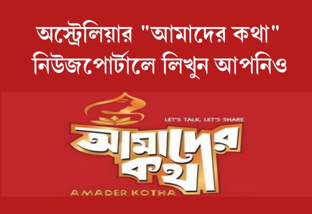 অস্ট্রেলিয়ার নিউজপোর্টাল "আমাদের কথা" তে লিখুন আপনিও। অস্ট্রেলিয়া ও বাংলাদেশের নানা আয়োজন, প্রবাসীদের সুযোগ-সুবিধা, সমস্যা-সম্ভাবনা, সাফল্য, রাজনৈতিক-সাংস্কৃতিক কর্মকাণ্ডের খবর, ছবি ও ভিডিও আমাদের পাঠাতে পারেন news@amaderkotha.org মেইলে।