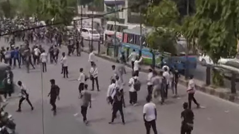 ঢাকার সায়েন্স ল্যাব মোড়ে ঢাকা কলেজ ও ঢাকা সিটি কলেজের শিক্ষার্থীদের মধ্যে ফের ইটপাটকেল নিক্ষেপ, ধাওয়া পাল্টা-ধাওয়ার ঘটনা ঘটেছে। এ সময় শিক্ষার্থীদের কয়েকজনের হাতেও লাঠি দেখা গেছে। খবর পেয়ে ঘটনাস্থলে এসে পুলিশ লাঠিপেটা করে ও কাঁদানে গ্যাস ছুড়ে শিক্ষার্থীদের সরিয়ে দেয়।
