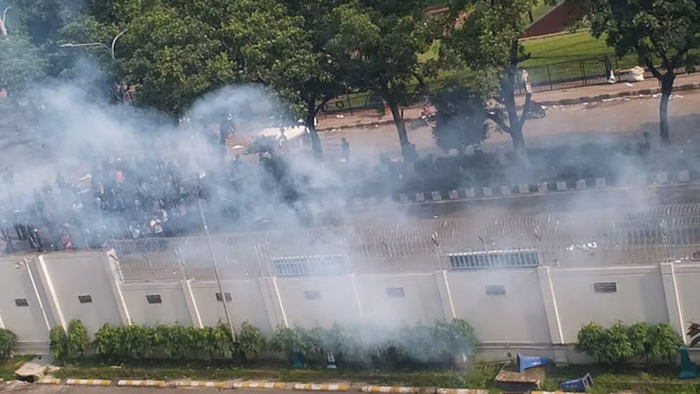 মঙ্গলবার বিকাল ৪টা ১০ মিনিটের দিকে সাউন্ড গ্রেনেড ছোড়ার শব্দ শোনা গেছে। এ ছাড়া কাঁদানে গ্যাসের শেলও ছোড়া হয়।