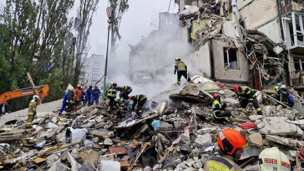 “ক্ষতিগ্রস্ত আবাসিক ভবনের ধ্বংস্তূপগুলোতে দুর্যোগ মোকাবিলা দপ্তরের কর্মীরা অনুসন্ধান তৎপরতা চালাচ্ছেন। আমরা এখনও জানি না— কত জন মানুষ এসব ধ্বংসস্তূপের তলায় চাপা পড়েছেন”, টেলিগ্রামবার্তায় বলেছেন জেলেনস্কি।