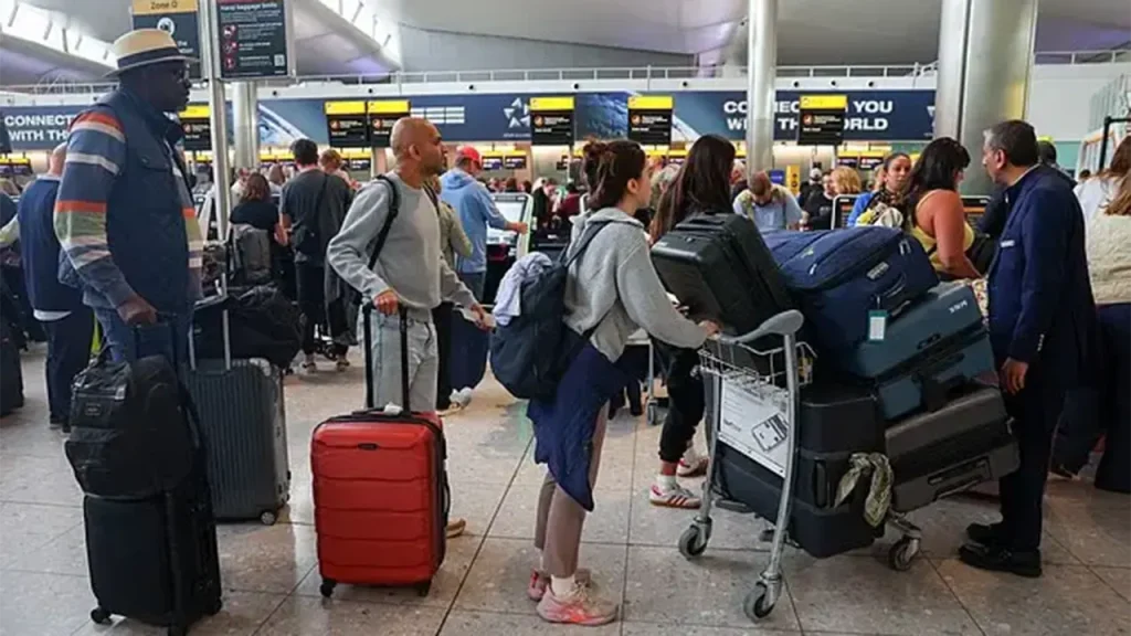 প্রতিবেদনে বলা হয়েছে, ব্রিটিশ ভ্রমণকারীরা হিথ্রো বিমানবন্দরে তীব্র ভ্রমণ বিশৃঙ্খলার মুখোমুখি হয়েছেন। স্থানীয় সময় শুক্রবার রাতে বড় ধরনের সাইবার হামলার কারণে চেক-ইন ও বোর্ডিং সিস্টেম অচল হয়ে পড়ে। এতে যুক্তরাজ্যের বৃহত্তম বিমানবন্দরটিতে সকাল থেকে যাত্রীদের তিন ঘণ্টার দীর্ঘ সারিতে অপেক্ষা করতে হয়েছে।