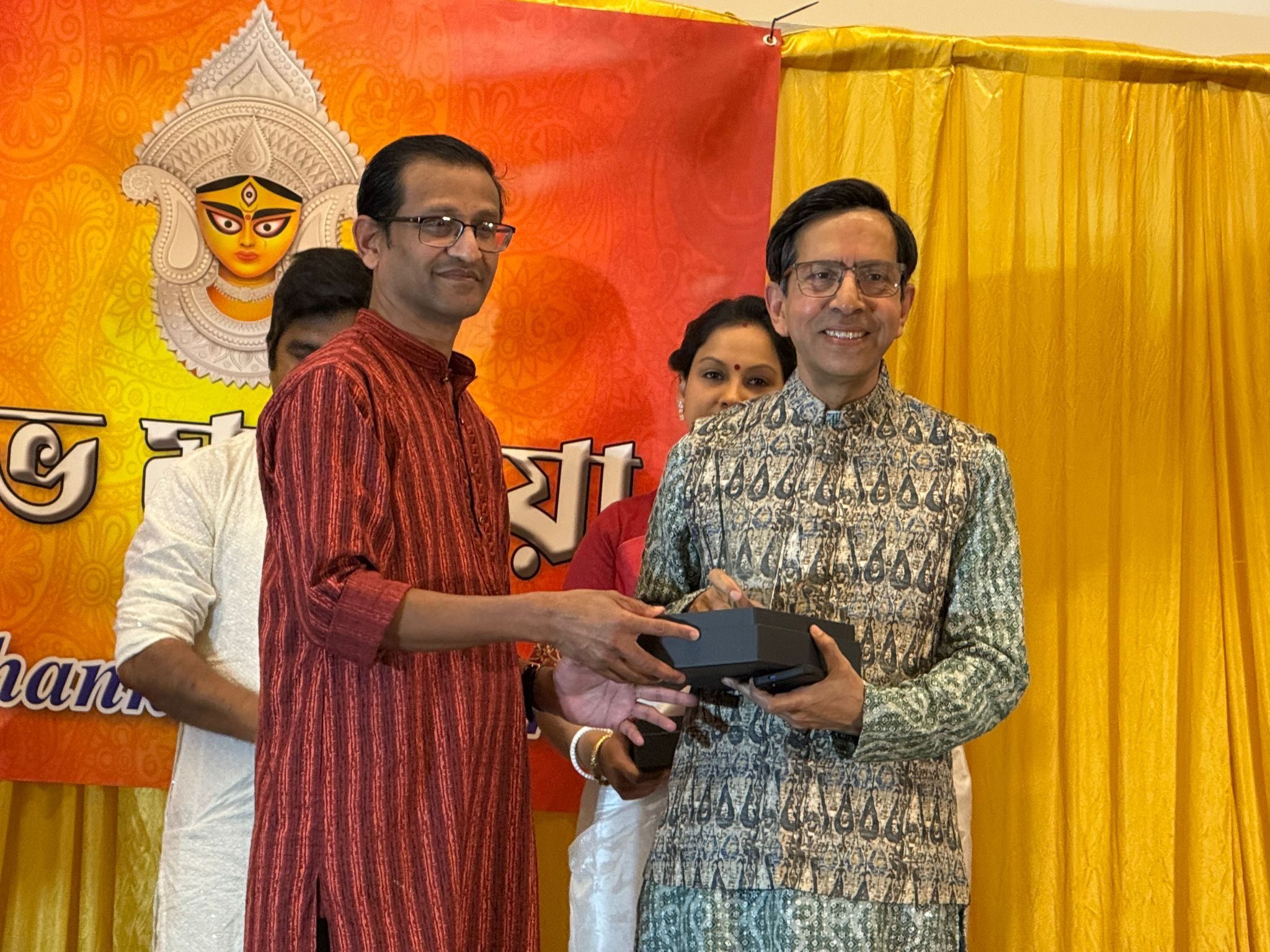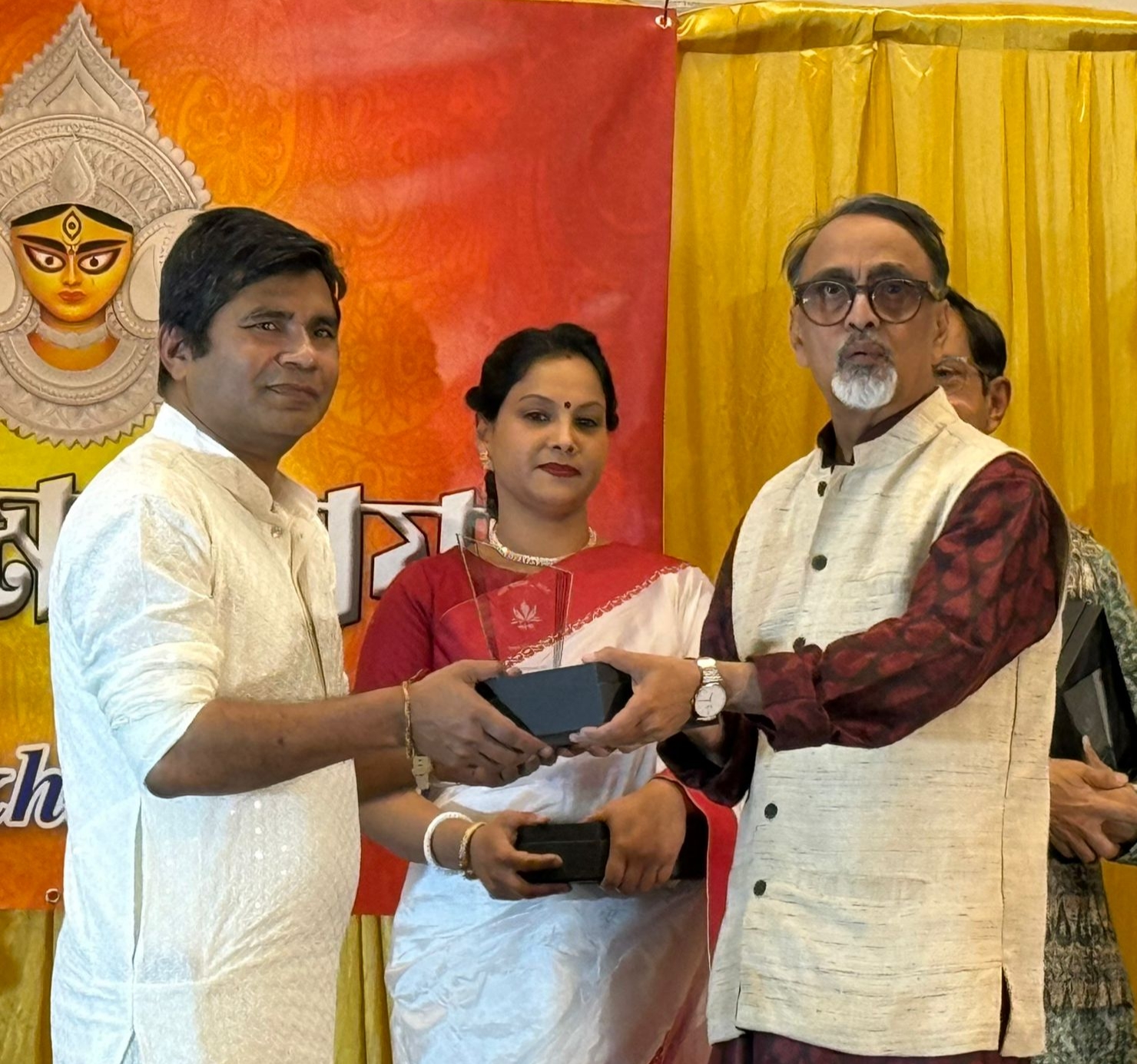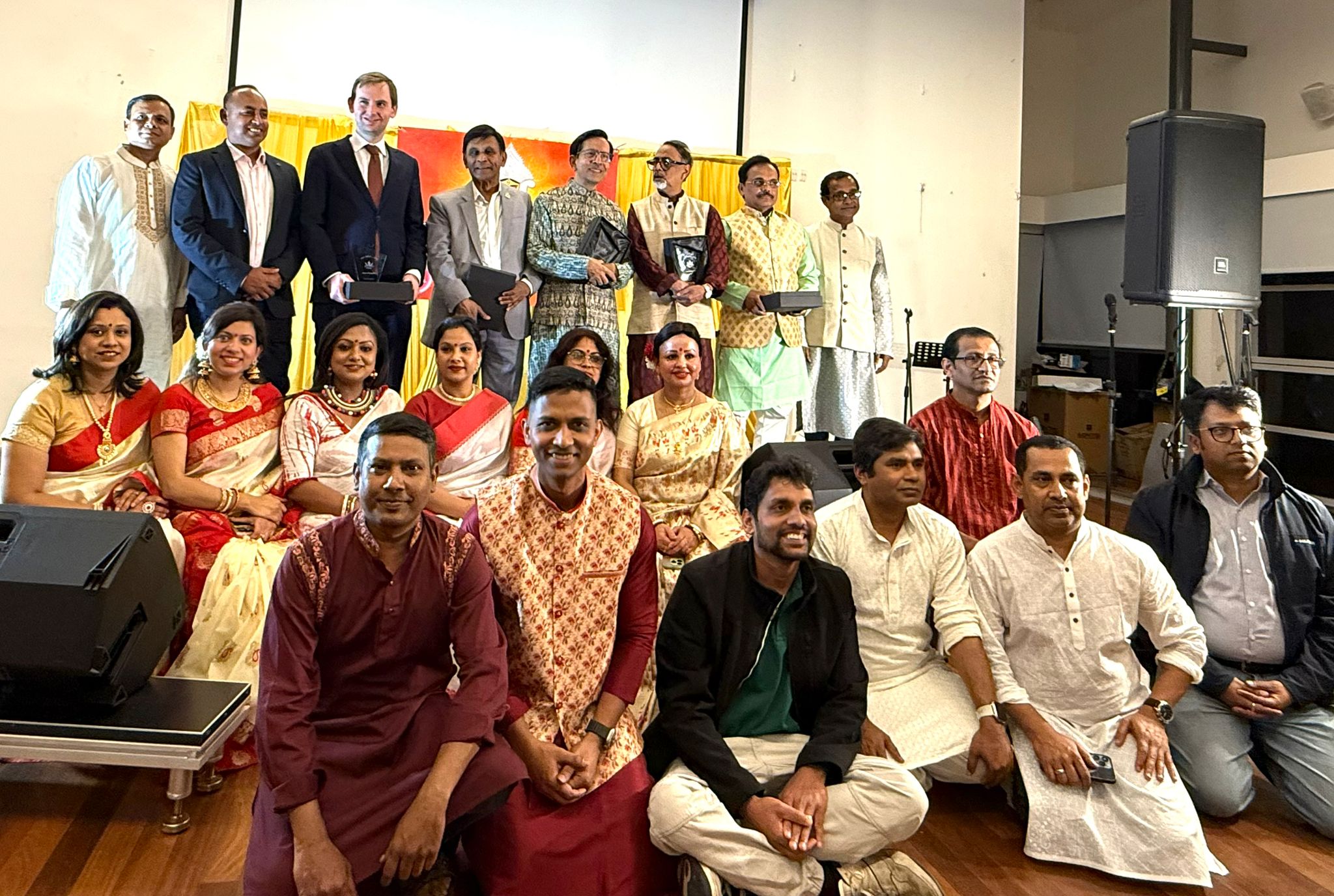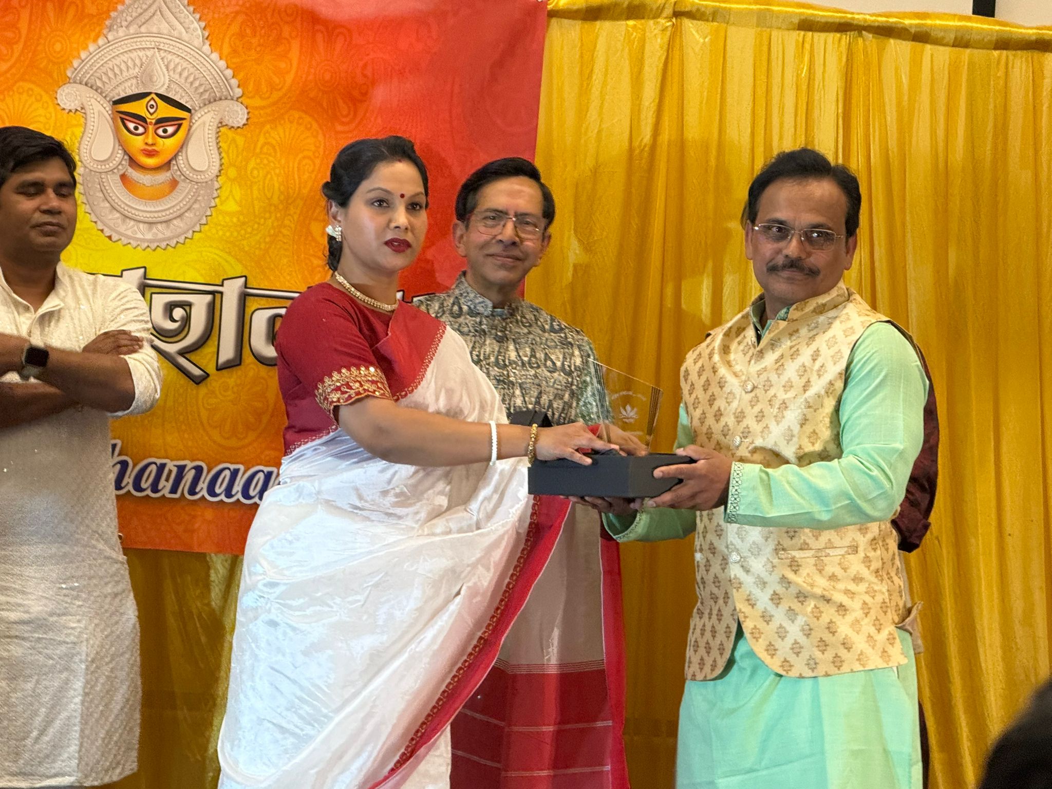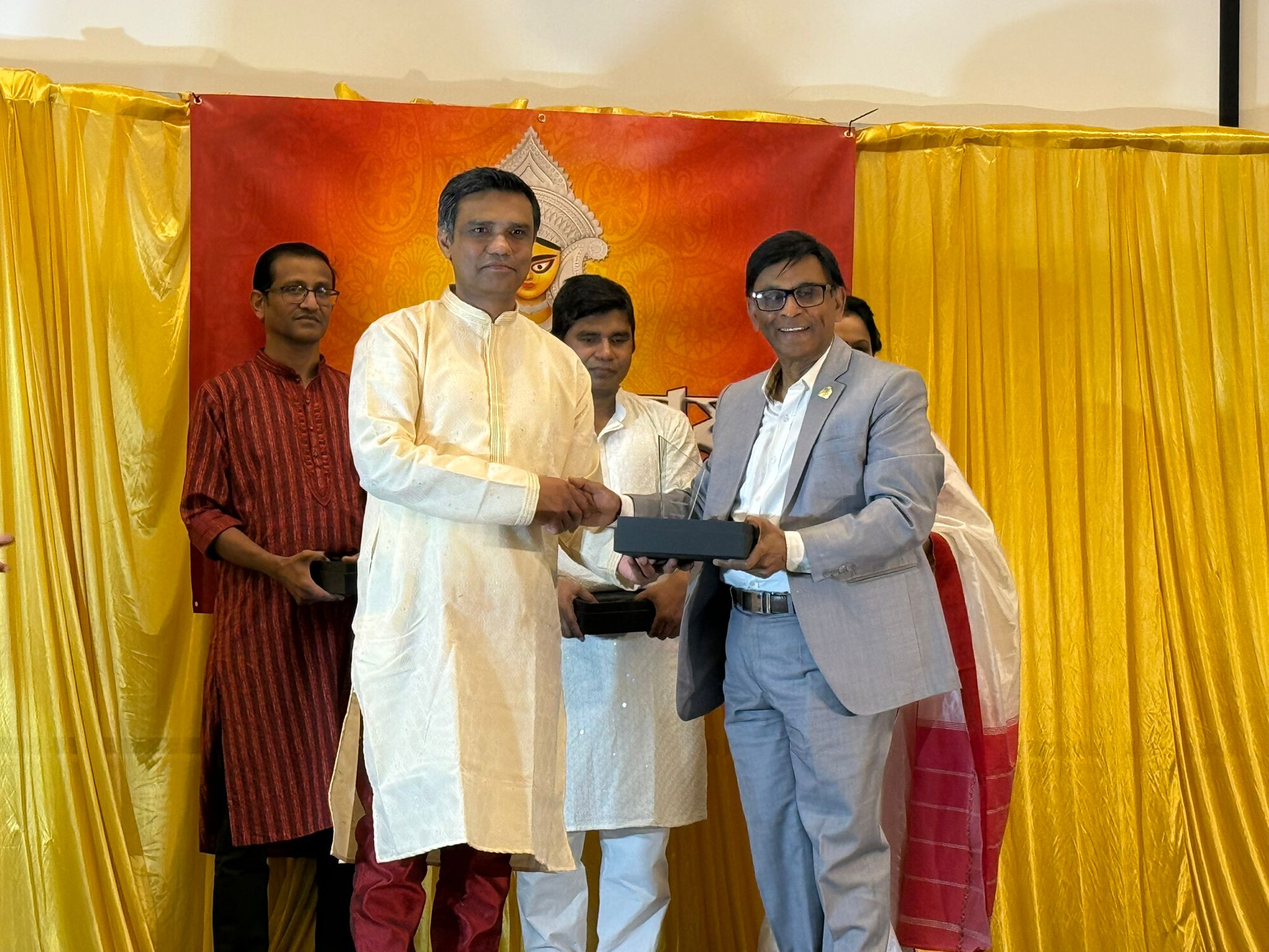তাঁদের হাতে এই সম্মাননা তুলে দেন সংগঠনের পক্ষ থেকে রবীন্দ্র সি দাস, গনেশ ভৌমিক, কামনাশীষ চৌধুরী, নকুল চন্দ্র পাল এবং মৌমিতা শর্মি ।সম্মাননা প্রদানের সময় হলে নেমে আসে গর্ব আর আবেগের আবহ। করতালির শব্দে মুখরিত হয় পরিবেশ, উপস্থিত সবাই অনুভব করেন প্রবাসেও বাঙালিদের কৃতিত্ব, শ্রম আর অবদান কখনো বিস্মৃত হয় না।