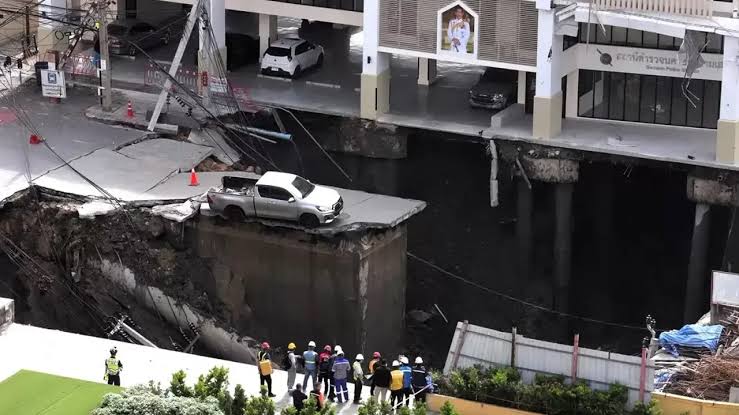 থাইল্যান্ডের ভাজির জেলায় ভয়াবহ সড়ক ধসের ঘটনায় সৃষ্টি হয়েছে বিশাল একটি গর্ত। বুধবার (২৪ সেপ্টেম্বর) সকালে কেন্দ্রীয় হাসপাতাল ও মেট্রো স্টেশনের সামনে হঠাৎ করেই রাস্তার বড় একটি অংশ ৫০ মিটার গভীরে চলে যায়।