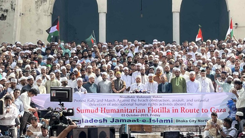 আজ (শুক্রবার) জাতীয় মসজিদ বায়তুল মোকাররমের উত্তর গেটে জামায়াতে ইসলামী ঢাকা মহানগর উত্তর-দক্ষিণ আয়োজিত বিক্ষোভ সমাবেশে এসব কথা বলেন তিনি। গাজায় ত্রাণ বহনকারী নৌবহর আটকের পর সুইডিশ জলবায়ু কর্মী গ্রেটা থুনবার্গসহ শত শত কর্মীকে আটক করেছে ইসরায়েলি বাহিনী। সে বহরে প্রায় ৪০টি জাহাজ ছিল যার প্রায় সবকটিকে আটকে দেওয়া হয়েছে। এর প্রতিবাদে এই বিক্ষোভ সমাবেশের আয়োজন করা হয়।