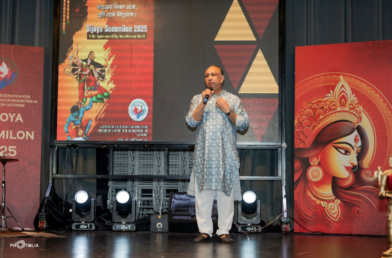 অস্ট্রেলিয়ায় প্রবাসী বাঙালিদের ঐক্য ও সংস্কৃতির এক অনন্য প্রকাশ ঘটলো ‘বিজয়া সম্মিলনী ২০২৫’-এ। শনিবার, ৮ নভেম্বর সিডনির শহরতলী ক্যাম্পসির অরিয়ন ফাংশন সেন্টারে আয়োজিত এই মহোৎসবে অংশ নেয় অস্ট্রেলিয়ার ২৪টি সংগঠন। সার্বিক আয়োজনের নেতৃত্বে ছিল Australian Federation for Ethnic and Religious Minorities in Bangladesh Limited (AFERMB)।