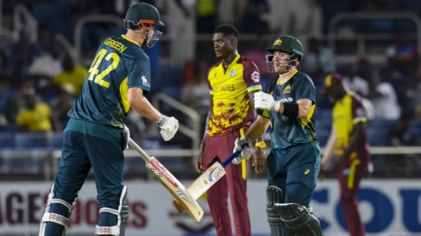 ওয়েস্ট ইন্ডিজের বিপক্ষে পাঁচ ম্যাচের সিরিজে দ্বিতীয় টি-টোয়েন্টিতেও সহজ জয় পেয়েছে অস্ট্রেলিয়া। আন্দ্রে রাসেলের বিদায়ী টি-টোয়েন্টি ম্যাচে প্রথমে ব্যাট করে ৮ উইকেটে ১৭২ রানের চ্যালেঞ্জিং পুঁজি পায় স্বাগতিকরা। তবে এই
