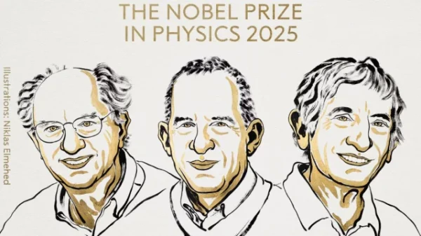 চলতি বছর পদার্থ বিজ্ঞানে নোবেল পুরস্কার পেয়েছেন মার্কিন তিন বিজ্ঞানী। তারা হলেন-জন ক্লার্ক, মিশেল এইচ. ডেভোরেট এবং জন এম. মার্টিনিস। মঙ্গলবার (৭ অক্টোবর) রয়্যাল সুইডিশ একাডেমি অব সায়েন্সেস পদার্থ বিজ্ঞানের