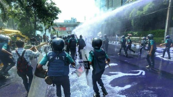 তিন দফা দাবিতে শাহবাগ থেকে প্রধান উপদেষ্টার বাসভবন যমুনার দিকে যাওয়ার পথে প্রকৌশল শিক্ষার্থীদের সঙ্গে পুলিশের ধাওয়া-পাল্টা ধাওয়ার ঘটনা ঘটেছে। পুলিশের ব্যারিকেড ভেঙে শিক্ষার্থীরা সামনে এগিয়ে যেতে চাইলে পুলিশ তাদের
